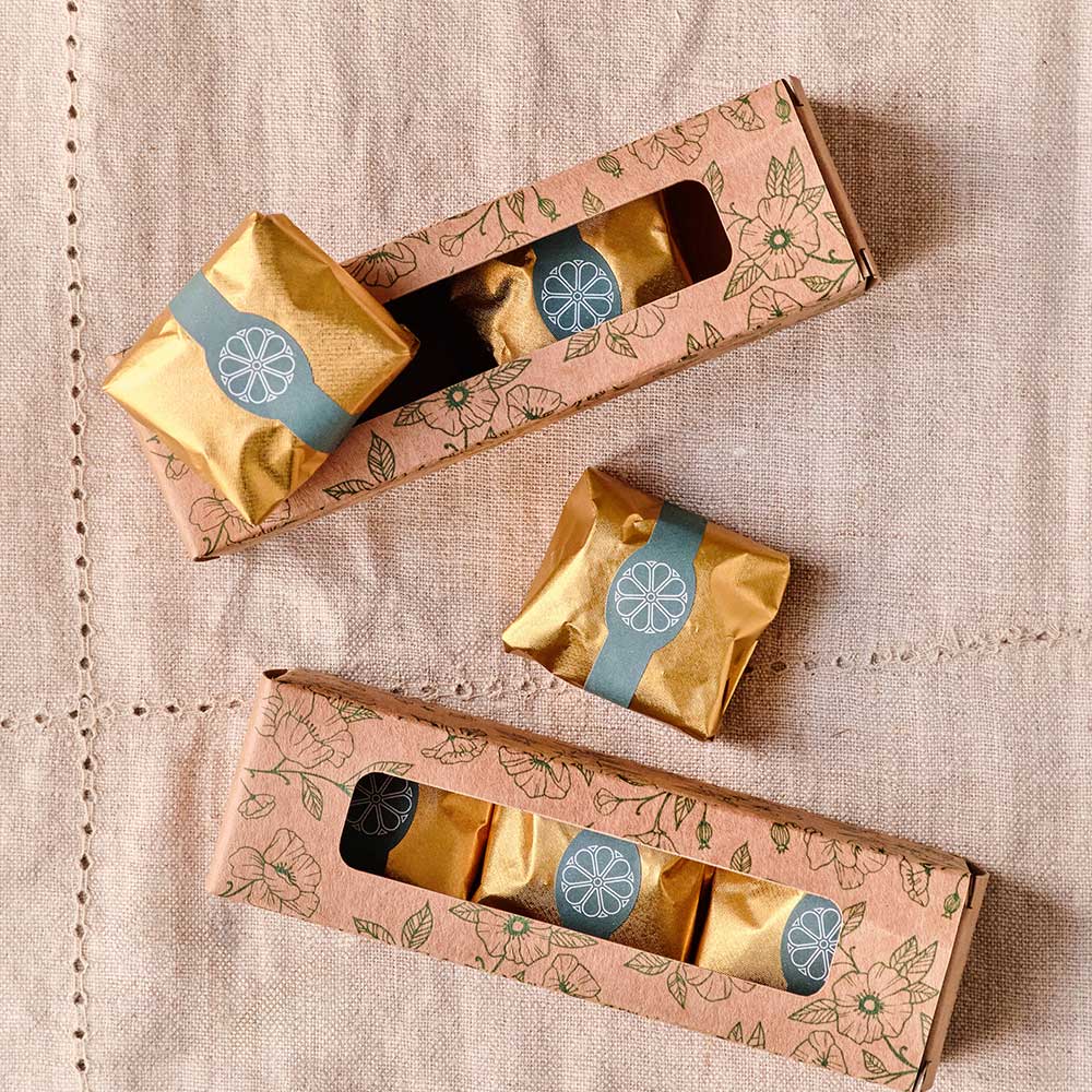 L’élégance d’un motif floral, toute la gourmandise enfantine du chocolat au lait ou du caramel et des jeux de texture pour le plus grand plaisir des petits comme des grands gourmands.