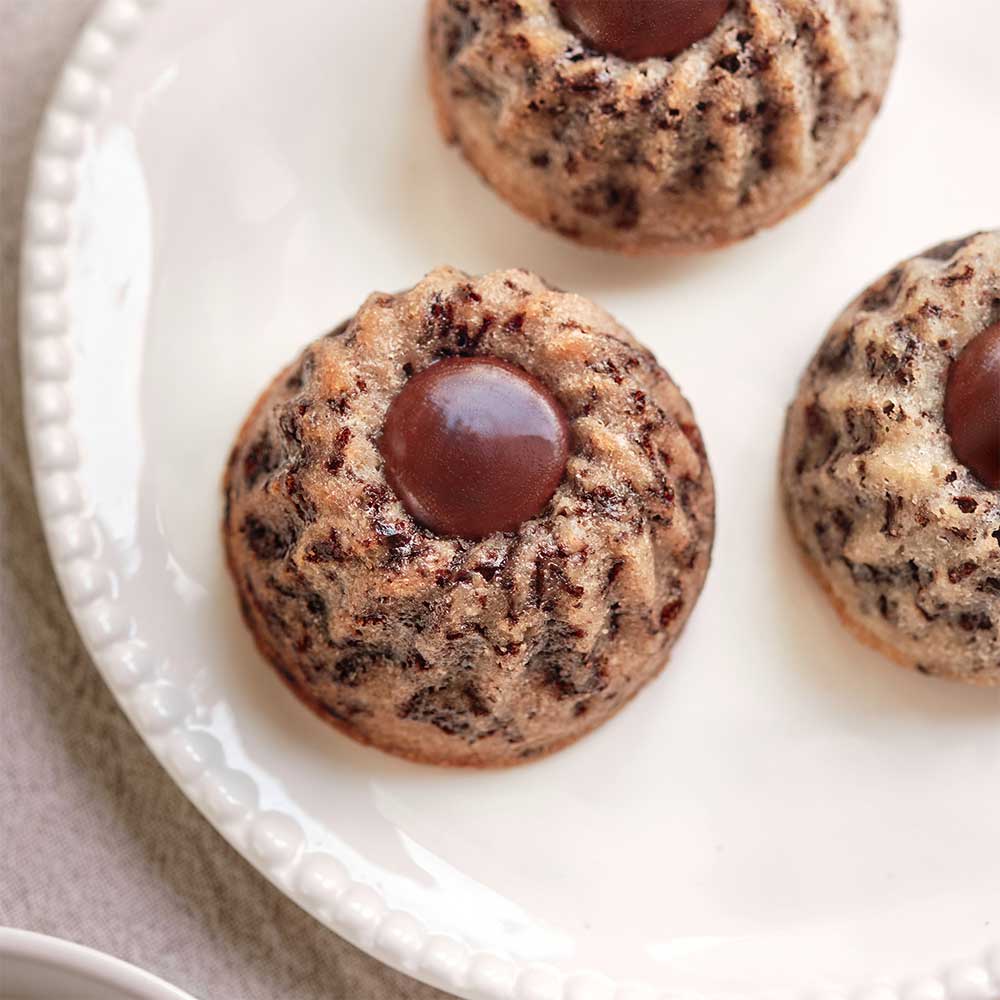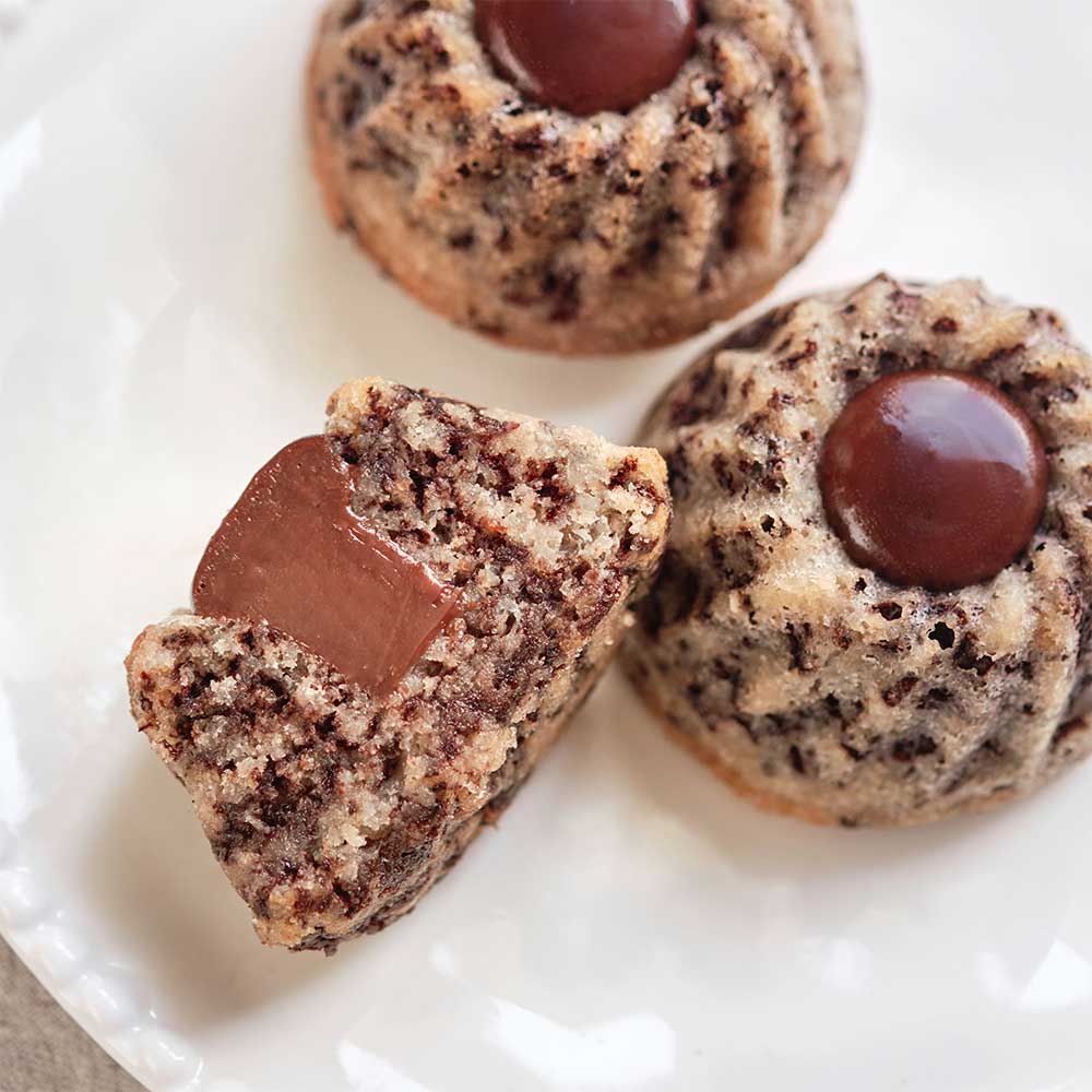 Un petit gâteau ultra-gourmand et très addictif qui donne envie de se faire plaisir à toute heure entre le moelleux du financier au bon goût de beurre noisette parsemé de fines paillettes de chocolat et le fondant de la ganache chocolat noisette.
